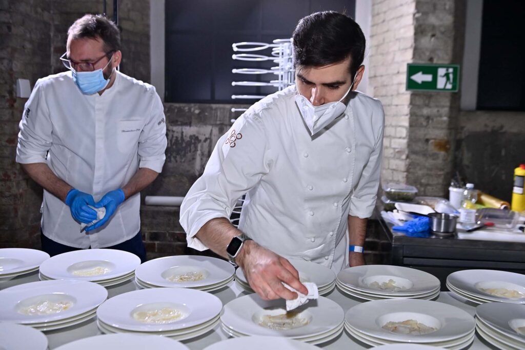 Quattro grandi chef hanno portato le loro creazioni all’interno delle OGR: Federico ZanasiCondividere, Alessandro MeccaSpazio 7, Paolo FantiniScannabue e Matteo BaronettoDel Cambio, hanno proposto 4 piatti in abbinamento a grandi vini del nostro territorio.